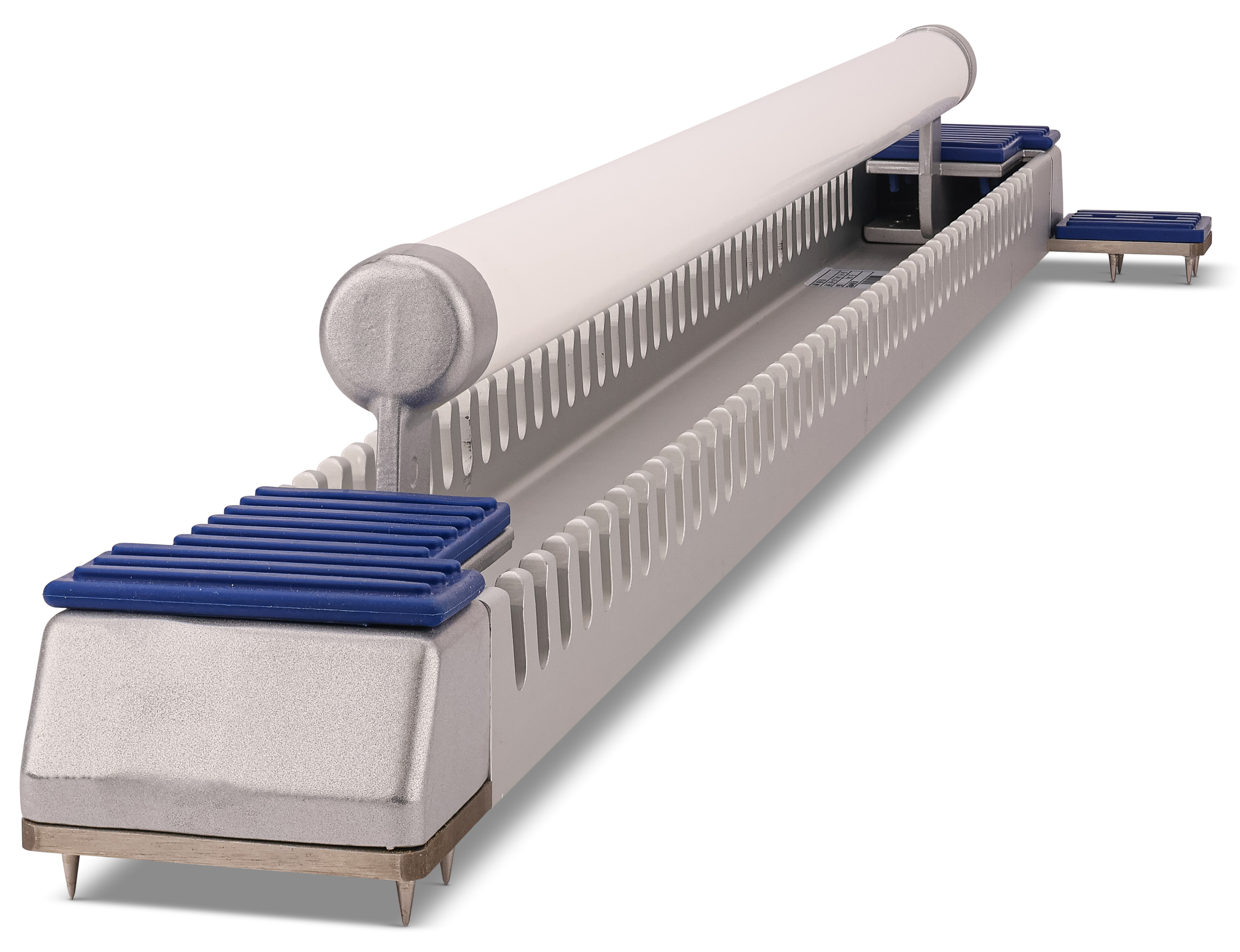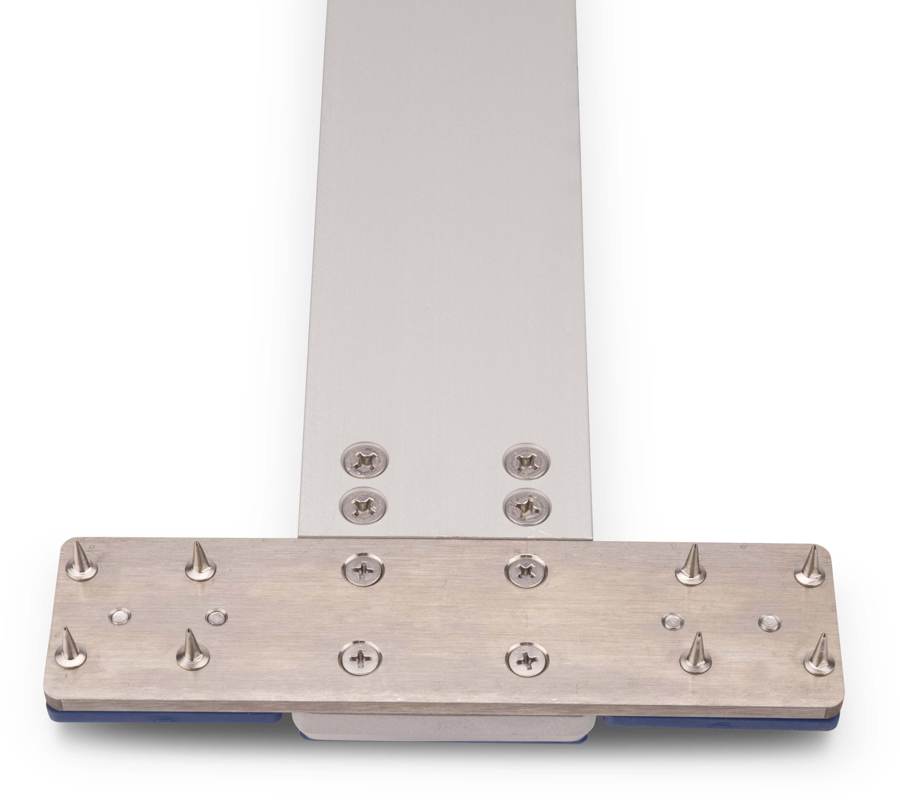 The generous pedal surfaces (approximately 24 cm high and 14 cm wide) provide all athletes with ample support for an optimal push-off position. The textured rubber coating and robust knobs provide a secure grip for spikes and remain abrasion-resistant even with intensive use. The pedals’ shape naturally pre-tensions the foot, whether the toes touch the track or hover just above it.