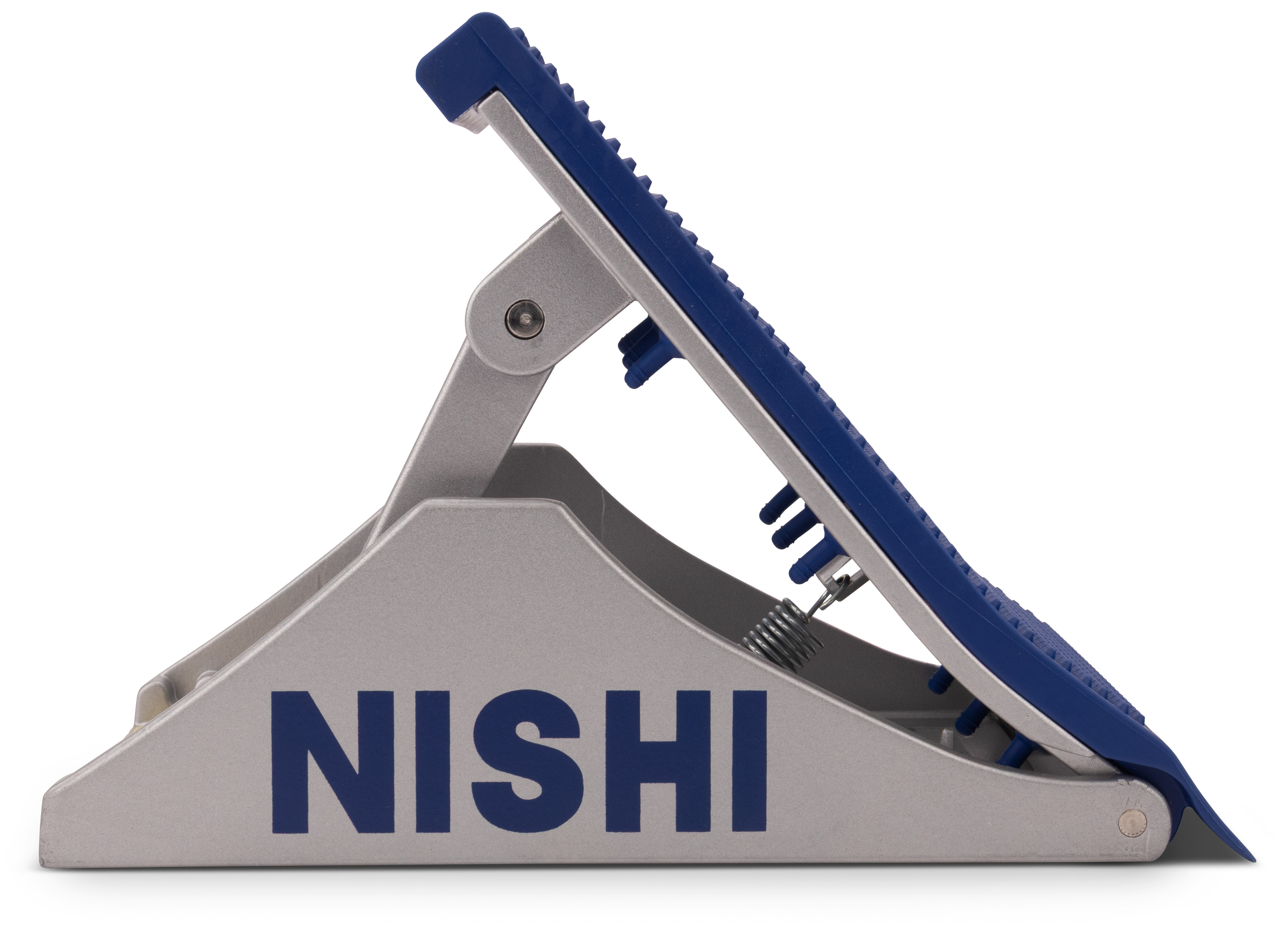 Featuring 40 locking positions along the rail, the NISHI starting block provides exceptionally fine pedal-position adjustment – significantly more than standard competition starting blocks. The pedal angles can be adjusted in seven steps, supported by a smooth, spring-based mechanism.