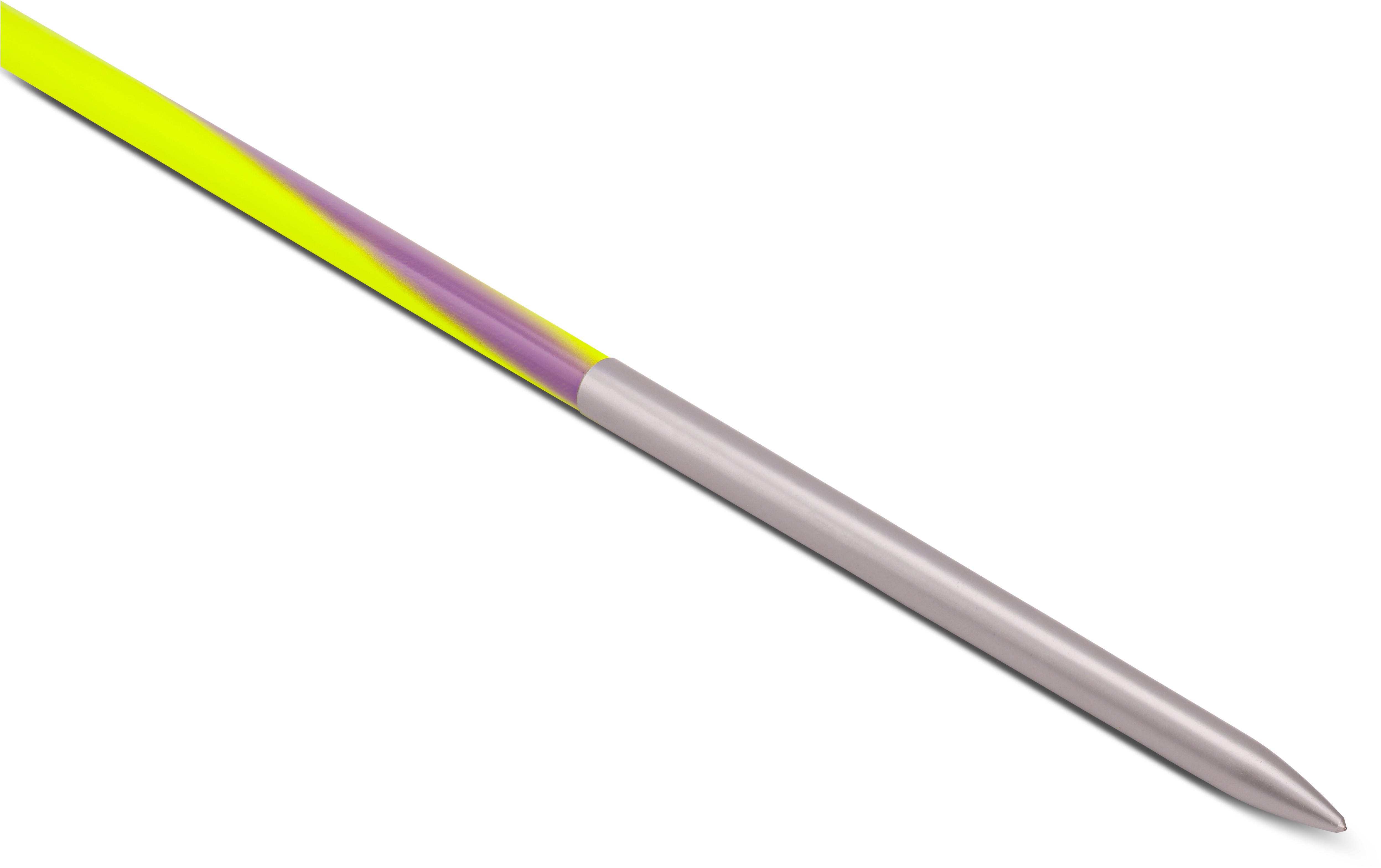 The 700 g javelin is used in competition by male U18 athletes and by male seniors in the M50 and M55 categories. Note: The 700 g model complies with the WA regulations set to take effect on April 1, 2025. It is available only in the medium version with a thin tip (NXS).
