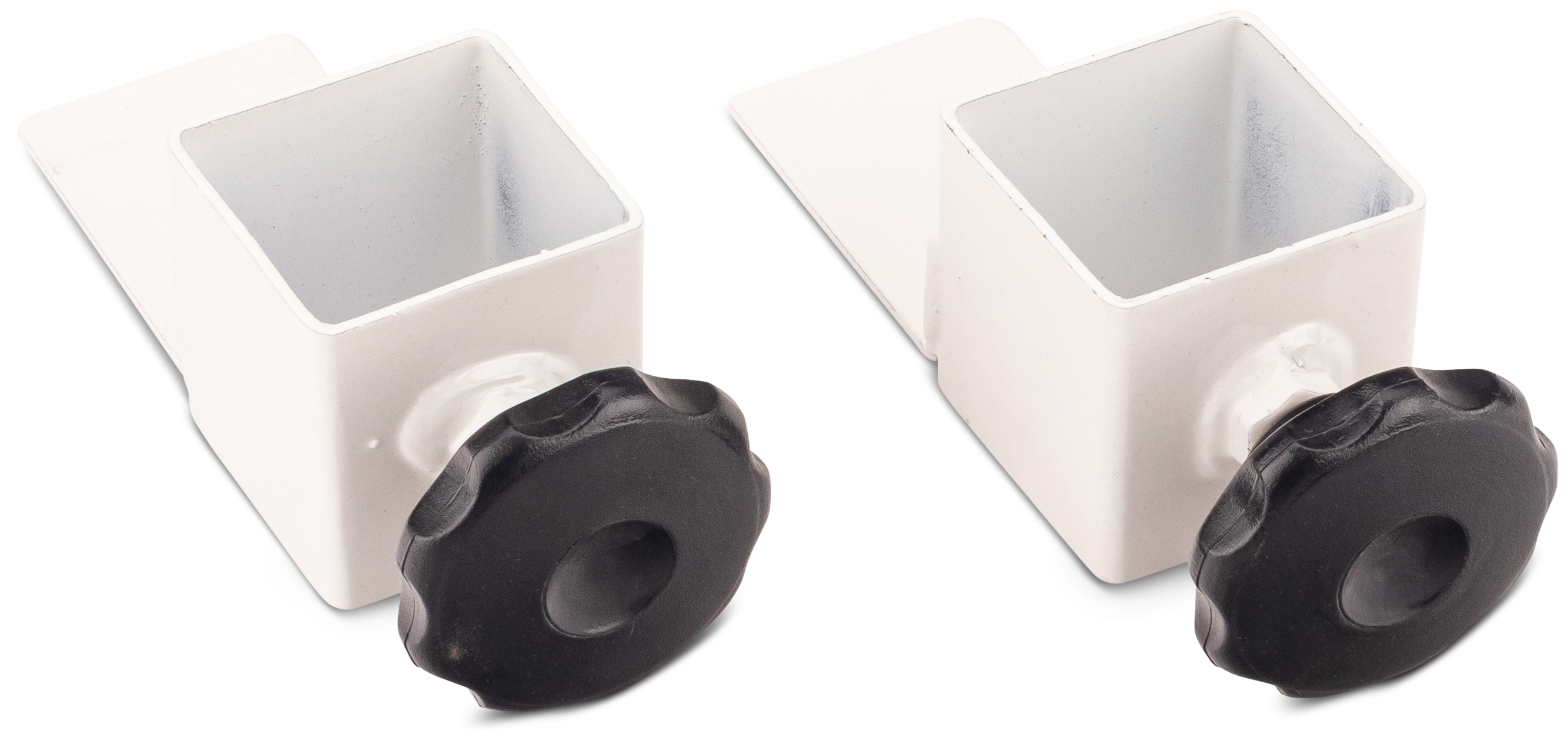 Competition and training high jump crossbar brackets. The solid brackets won't bend under pressure. Suitable for 40 x 40 mm square-cut posts.
