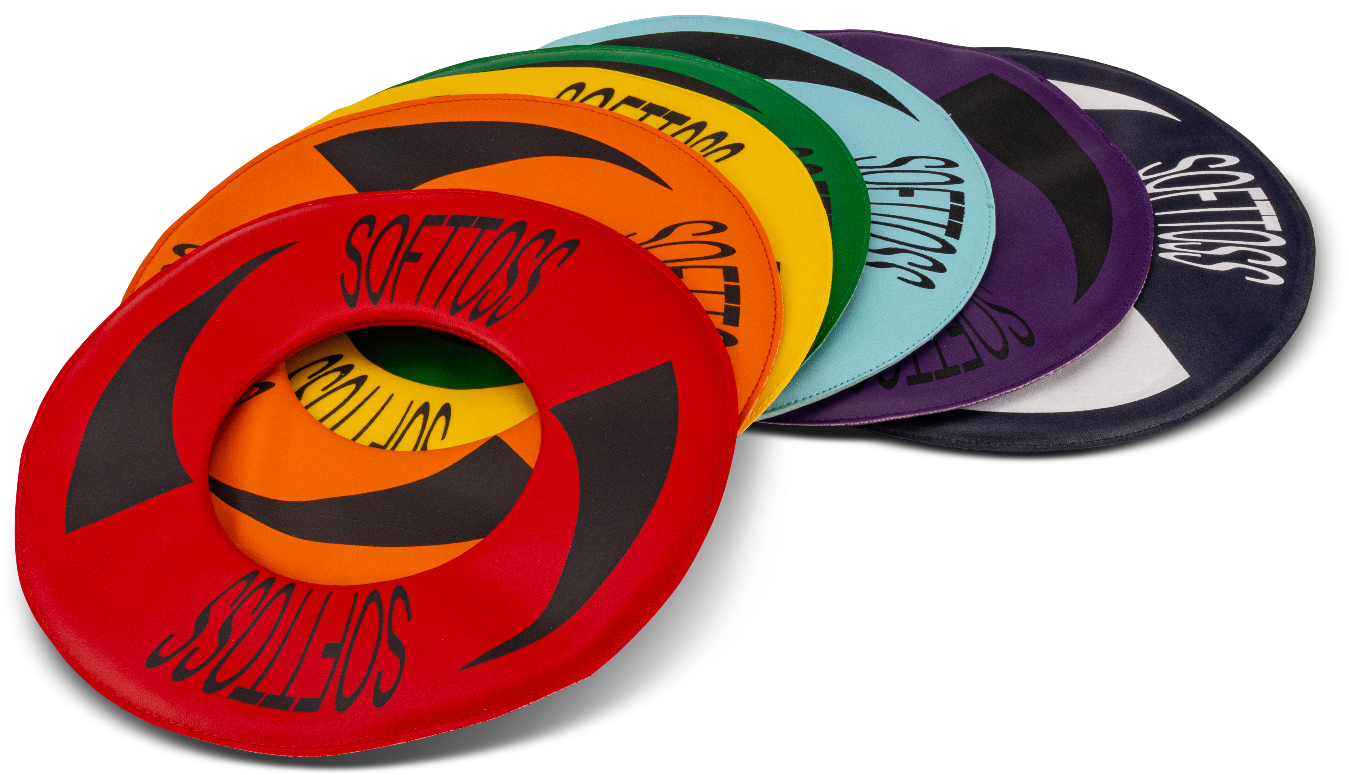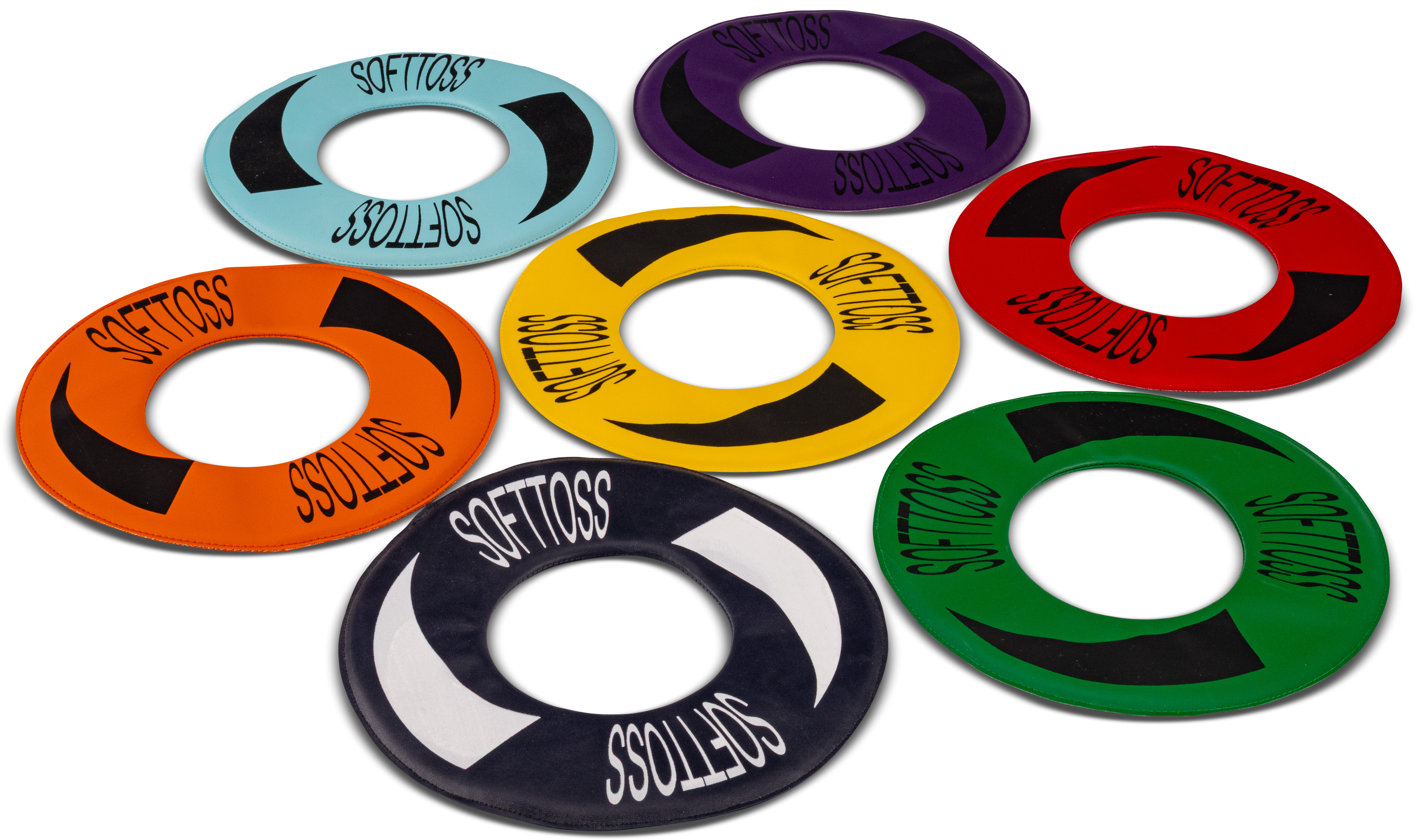 Very soft flying disc for safe sport games. Particularly suitable for indoor use or windless conditions. Made from PVC-covered foam. The large centre hole means this flying disc can be easily caught. Hygienic cleanable surface.