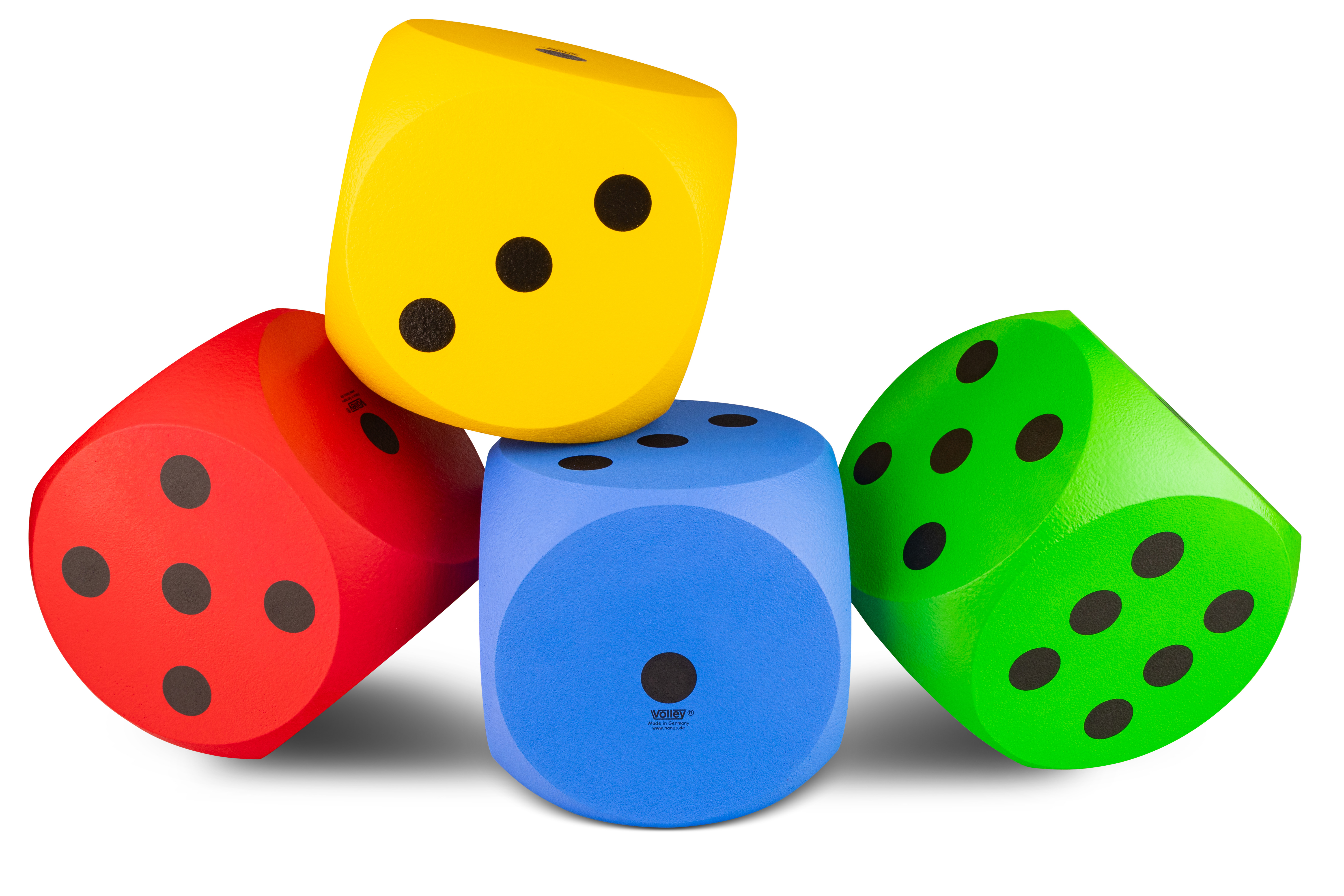 This large foam dice features comparatively long edges of 30 cm in length. As the dice maintains its shape well, it can be used as a seat for small children. The dice is useful in helping to improve motor skills as well as for the educational benefits it affords in schools and kindergartens. Whether for maths lessons in school or for building or catching games in kindergarten, the foam dice is a safe and multifunctional toy. Thanks to its PU coating, this cube is very robust and hygienic. Quality product made in Germany.